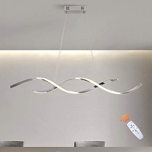 LAIDEPA Sospensione LED Lampada A Ristorante Soffitto Lampadari Moderna Dimmerabile Telecomando Cucina Soggiorno Regolabile in Altezza per Corridoio Bar Camera da Letto Illuminazione,Argento,110cm