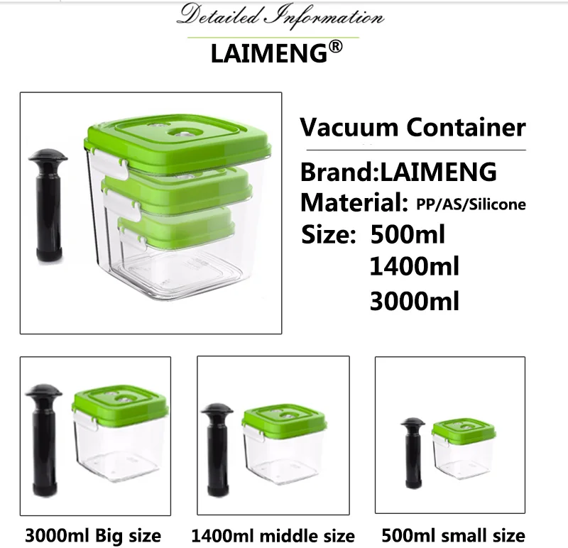 LAIMENG Plastic Storage Containers For Food Storage Large Capacity Vacuum Container Work With Pump Vacuum Sealer S189