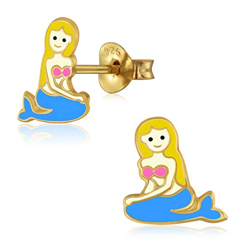 Laimons - Orecchini da bambina a forma di sirena, 10 mm, in argento Sterling 925 placcato oro blu, viola, giallo
