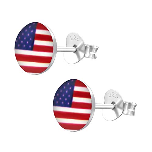Laimons Orecchini a pressione da donna gioielli da donna Bandiera americana USA design disco Rosso, Bianco, Blu Argento Sterling 925