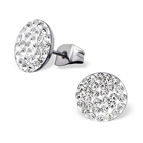 Laimons Orecchini a pressione da donna gioielli da donna Forma a disco Con brillantini Acciaio inox
