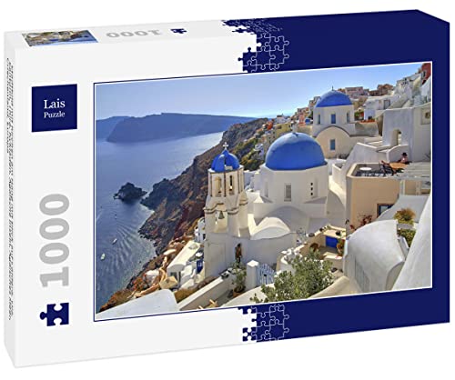 Lais Puzzle Paesaggio Urbano con chiese sulla collina con Vista sulla Caldera, Oia, Santorini, Thira, Cicladi, Isole Egee, Mar Egeo, Grecia, Europa 1000 Pezzi