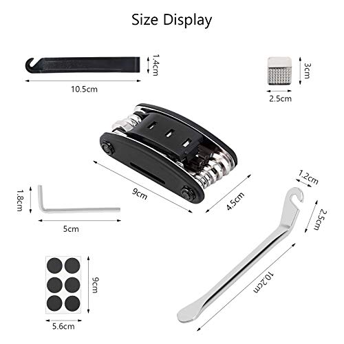 Cosa otterrai: Il pacchetto include 1 * 16 in 1 kit di strumenti di riparazione, 1 * chiave a brugola extra, 1 * raspa in metallo, 1 * borsa degli attrezzi, 2 * smontagomme nero, 3 * leva del pneumatico toppe di riparazione in acciaio inossidabile e 12 *, perfette per le diverse esigenze.