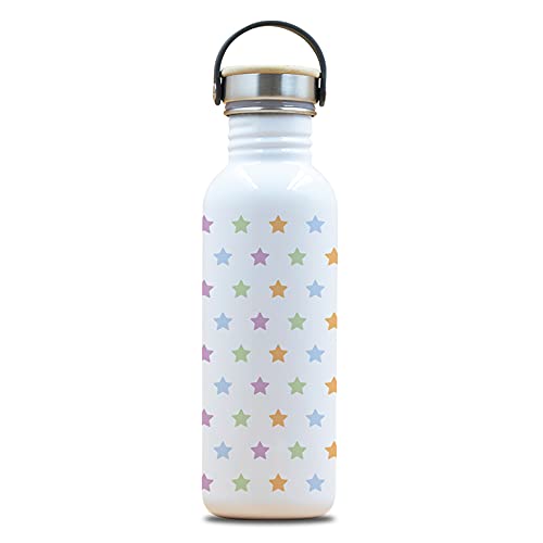 Laken Basic Borraccia in Acciaio Inossidabile, Bottiglia d'acqua con Tappo a Vite in Acciaio e Bamboo, Bocca Larga, 750ml, Drinklife Stars