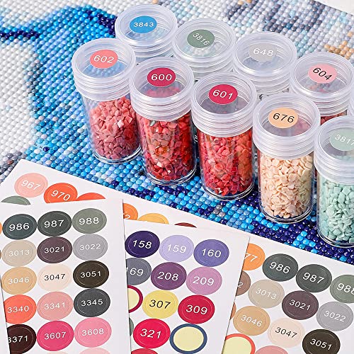 Applicazione: Le etichette adesive piccole adatto per disegno a diamante, diamond painting contenitori, questi adesivi con numero di colore saranno un diamond painting accessori per la tua pittura Diamond Art.