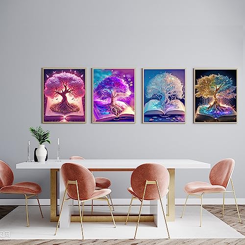 LAKSOL 4 Pezzi Diamond Painting Kit Completo, Paint by Numbers Albero Magico Diamanti Painting 5D DIY Ricamo Kit Pittura Diamante Artigianato Strass per Adulti