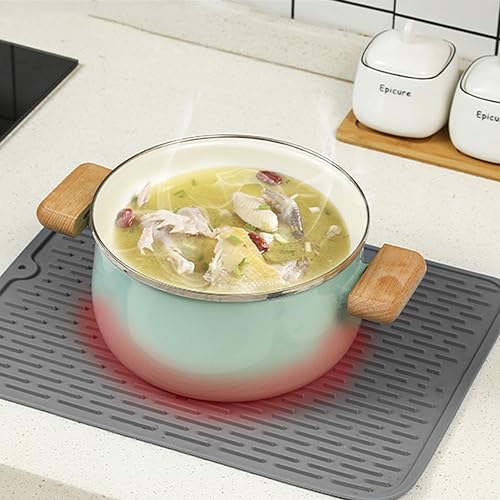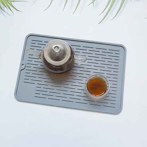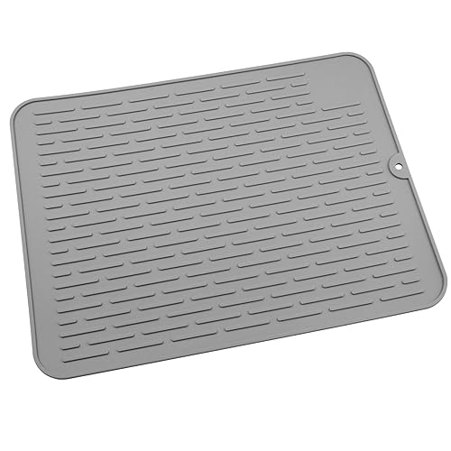 LAKSOL Tappetino Scolapiatti in Silicone, Tappetino Scolapiatti Cucina Resistente al Calore e Antiscivolo Tappetino per Asciugatura Piatti 40x30 cm, Grigio