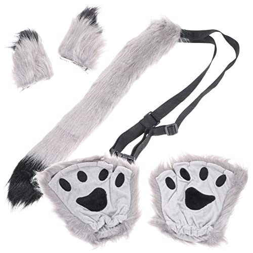 LALAFINA 1 Set Finta Coda di Orecchio Animale Coda e Orecchie di Peluche Fermaglio per con Orecchie di Gatto in Coda e Orecchie Pelose Volpe Capi di Abbigliamento Pelliccia Artificiale