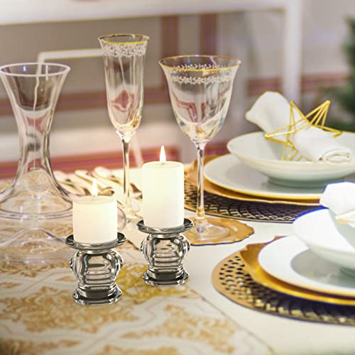 PORTA CANDELE A CERO -- Il design curvo rende i portacandele a cero molto eleganti. I portacandele con spessa parete in vetro senza piombo e ampia base rotonda forniscono un solido supporto per i portacandele, robusto e sicuro per l'uso. Serviranno per i vostri momenti romantici e significativi con decorazioni squisite.