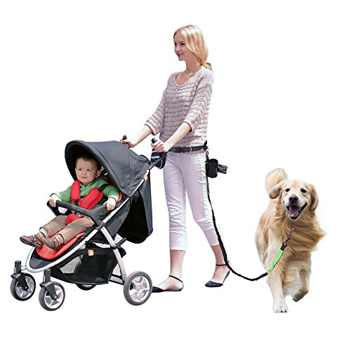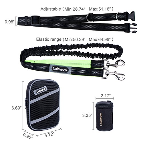 Lalawow Cani Guinzaglio Mani Libere con Cuciture Riflettenti + Dispenser Sacchetti di Rifiuti con 15 Sacchi + Marsupio Grande