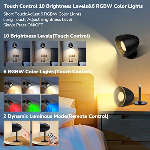 Laliled Applique da Parete 2PACK, 16 Lampade da Parete Dimmerabili Cambiabili di Colore, Rotazione Magnetica a 360° Supporto Touch e Telecomando, Lampade da Parete per Studio Lettura Comodino