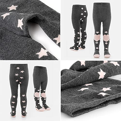 LaLoona Calze Antiscivolo Bambino, Collant Bambina Cotone con Gommini Antiscivolo - Calzamaglia Bambina Cotone - Unisex - stelle rosa