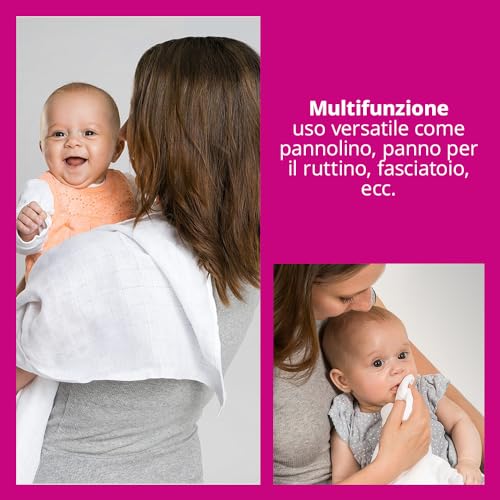 QUALITÀ PREMIUM: panno mussola a doppio tessuto è realizzato in cotone al 100%, è testato OEKO-TEX Standard 100, morbidissimo e molto assorbente, ideale per la pelle delicata dei neonati
