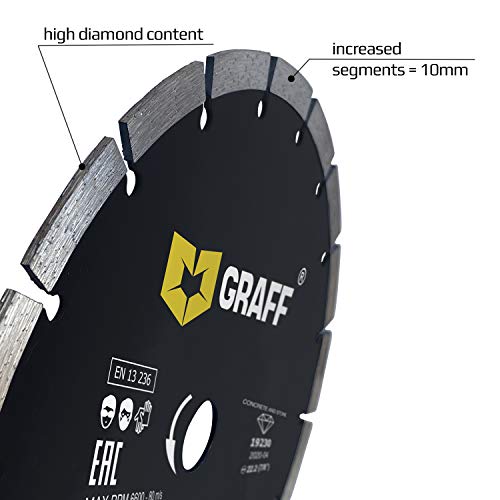 Denti Flex Disco diamantato 230 GRAFF ha la sua circonferenza. I denti a Z sono realizzati tramite processo di pressatura a caldo con diamantini.