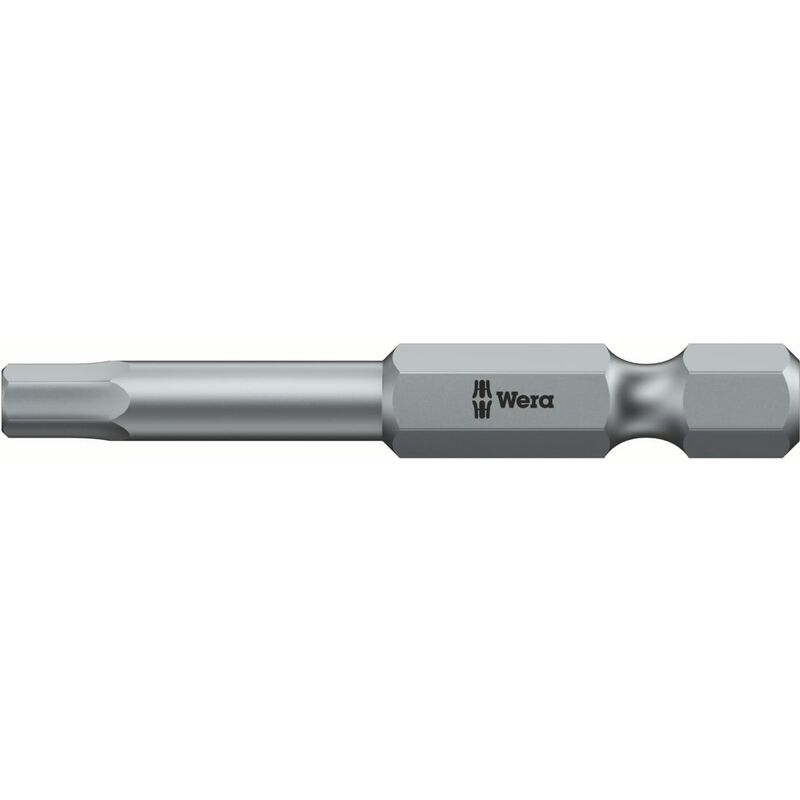 Per l'alloggiamento in impugnature portainserti o avvitatori elettrici con attacco esagonale oppure per l'alloggiamento in raccordi n. articolo 675000 − 675050. Uso: Per viti a esagono incassato DIN 7426. Norma: DIN ISO 1173 Materiale: Lega speciale al cromo-vanadio, tenace. Dati tecnici Tipo di prodotto Utensile bit Lunghezza complessiva, mm 50 Codolo esagonale per bit E 6,3 Denominazione originale prodotto 840/4 Z Hex-Plus Esagono, mm 1,5