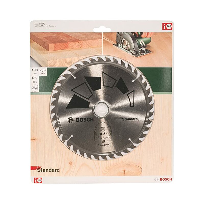 BOSCH - LAMA PER SEGA CIRCOLARE BASIC 190x1,2x30/24 MM Denti in metallo duro per stabilità e prestazioni di lunga durata Geometria denti Alternate Top Bevel (ATB) per strappi e tagli trasversali efficaci. Scanalature di dilatazione per basse vibrazioni e riduzione del rumore e del calore. Idonea per seghe circolari standard della maggior parte delle marche. Diametro lama mm: 190 Foro mm / Foro con anello riduttore: 30/24 Spessore di taglio mm: 2.2 Numero di denti: 40