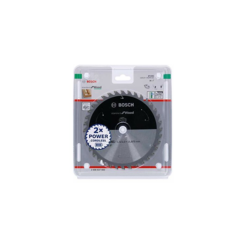 Bosch Accessories Lama Per Sega Circolare Standard For Wood (Legno, 165 x 15,875 x 1.5 mm, 36 Denti, Accessorio Per Sega Circolare A Batteria)