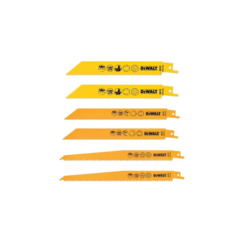 Dettagli: Versatile, questo set di 6 lame a sciabola DEWALT consente di tagliare legno, legno con chiodi, alluminio, vetroresina, metallo, tubi e profili. Il corpo spesso e le lame in acciaio al carbonio altamente flessibili rendono queste lame robuste e di lunga durata, mentre il trattamento ToughCoat resistente al calore garantisce prestazioni migliori. Corpo spesso per una maggiore durata Lama bimetallica;