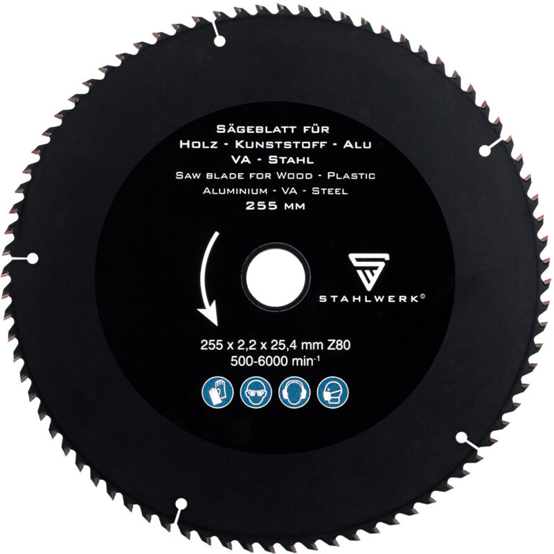 STAHLWERK Lama per sega da taglio per metalli/sega circolare per metalli Nero 255 x 25,4 mm / 10 Lama STAHLWERK per sega da taglio/sega circolare per metalli 255 x 25,4 mm / 10, lavorazione di alta qualità, eccellenti proprietà di taglio, resistente all'usura e durevole. Caratteristiche La lama garantisce eccellenti proprietà di taglio per un risultato di lavoro perfetto. Adatta al taglio di acciaio, alluminio e altri metalli, nonché di legno e plastica. Lavorazione di alta qualità, resistente all'usura e durevole. Ideale per l'industria, l'artigianato e il fai da te. Tecnicamente perfettamente abbinata alla sega da taglio per metalli STAHLWERK MT-3 ST. Nota: si consiglia sempre di utilizzare un refrigerante o un lubrificante per il taglio dei metalli. Dati tecnici Diametro della lama: 255 mm / 10 Montaggio lama: 25,4 mm / 1 Denti: Z80 Larghezza di taglio: 2,2 mm Contenuto della fornitura 1 x Lama nera per sega da taglio per metallo 255 x 25,4 mm / 10