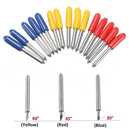 Lama per taglierina in vinile SUPERTOOL, lama per plotter da taglio + 45 x 29 x 11 mm in vinile + 15 lame da 30° / 45° / 60° (ogni grado 5 pezzi)
