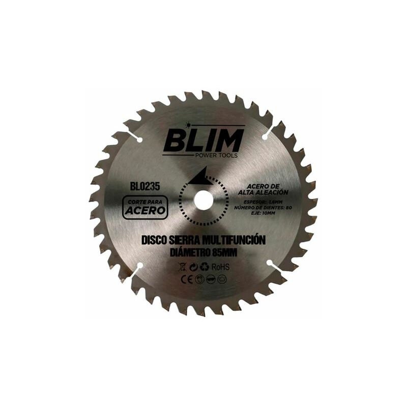 Lama da taglio in acciaio Blim per sega multifunzione 85 mm I denti della lama rivestiti in carburo di tungsteno offrono un'elevata resistenza al calore, l'usura dell'angolo di taglio garantisce una rimozione rapida ed efficiente dei trucioli, consentendo il taglio alternato a destra e a sinistra, generando a sua volta un taglio efficiente e più pulito per tutti i tipi di legname. Specifiche: -Realizzato in acciaio altamente legato (HSS). -Per tagliare ferro e acciaio. -Diametro 85 mm. -Spessore 1,6 mm. -Numero di denti: 80 -Albero: 10 mm.