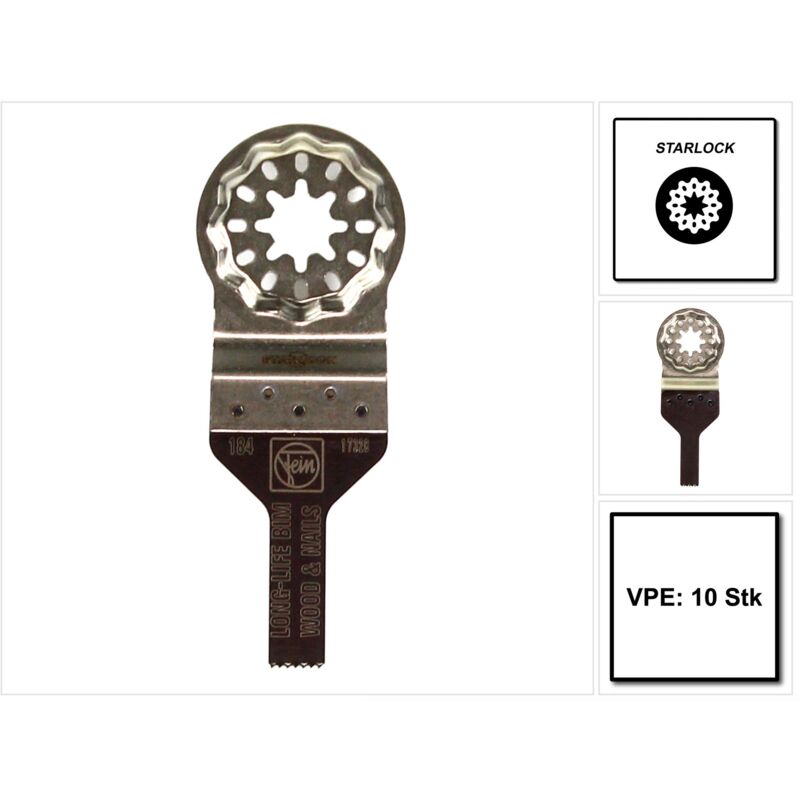 Dotazione: - 10x FEIN Lama da taglio E-Cut Long Life Starlock 30 x 10 mm / Bimetal ( 63502184240 ) Descrizione prodotto: La lama per sega bimetallica FEIN è adatta a tutti i materiali in legno, cartongesso e plastica. Un'eccellente durata di vita e un'elevata qualità di taglio garantiscono un avanzamento dei lavori senza intoppi. La lama della sega è estremamente robusta e insensibile anche ai chiodi nel legno (fino a circa 4 mm di diametro), ai mattoni, ecc... La larghezza media e la forma della vita garantiscono una velocità ottimale e una buona rimozione dei trucioli. Dati tecnici: Larghezza di taglio: 10 mm Lunghezza: 30 mm Contenuto: 10 unità Attacco: Starlock Materiale: bimetallo (metallo HSS e HCS)