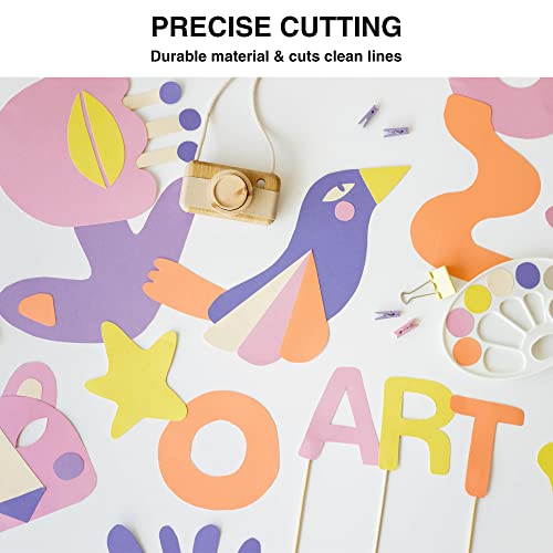 Taglio preciso: Ideale per tagliare materiali con spessore fino a 1,5 mm. Normalmente utilizzata per incidere motivi decorativi, monogrammi, loghi su carta, cartoncino, pelle, cartoncino per poster, vinile, fogli di alluminio, cartoncino per poster, cartoncino kraft, carte regalo, ecc.