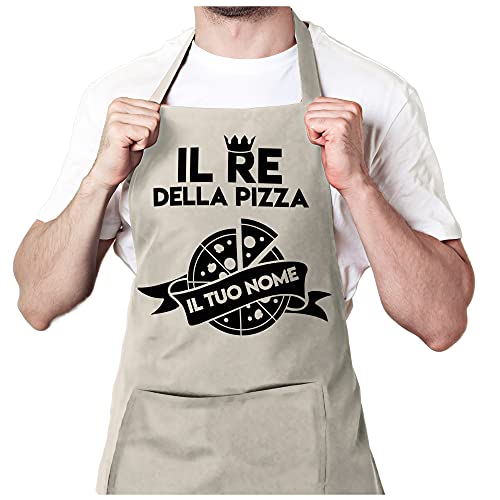 LaMAGLIERIA Grembiule personalizzato uomo o donna tuo nome Il Re Della Pizza, Natural