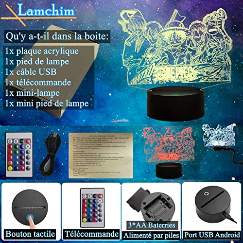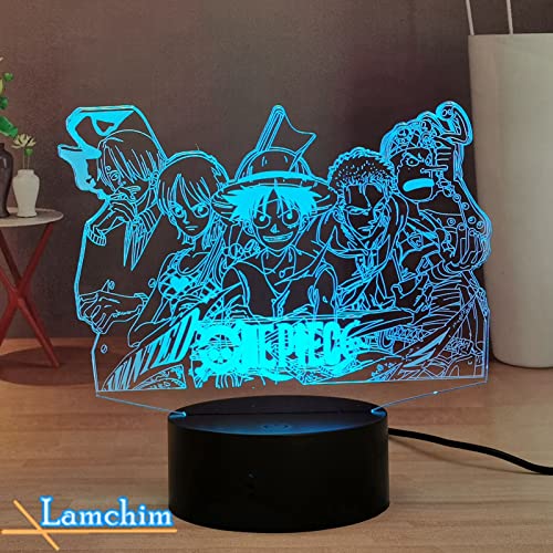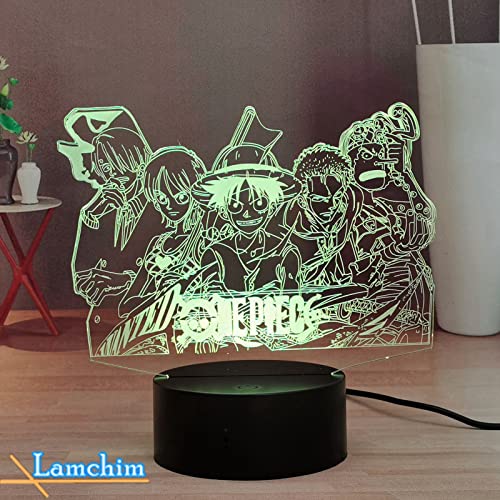 Lamchim - Luce notturna a LED motivo Anime Luffy Sanji Zoro Nami 16 colori per tavolo e scrivania, decorazione Touch Remote Bedroom Night Lamp per bambini compleanno for Boy Girl Teen
