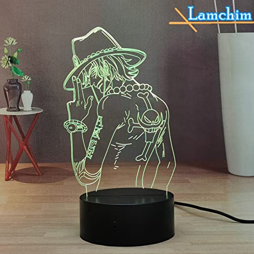 Lamchim manga Luffy Zoro 3D Lampada Anime Lamp, Touch & Remote Bedroom LED Night Light for Kids 7 colori che cambiano luce notturna