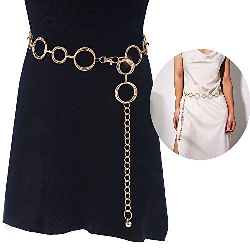 Lamdgbway O-ring Cinture A Catena Per Donna Cintura Cintura Per Abiti Cintura Catena Regalo Per Ragazze Oro Taglia Grossa 135CM / 53.1IN