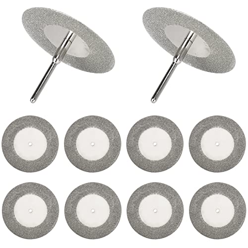10 lame per dischi da taglio diamantati da 40 mm con 2 mandrini da 1/8 '' lama in pietra per utensili rotanti taglio lucidatura piastrelle in vetro marmo plastica giada (40 mm (10 pezzi+2 mandrino))