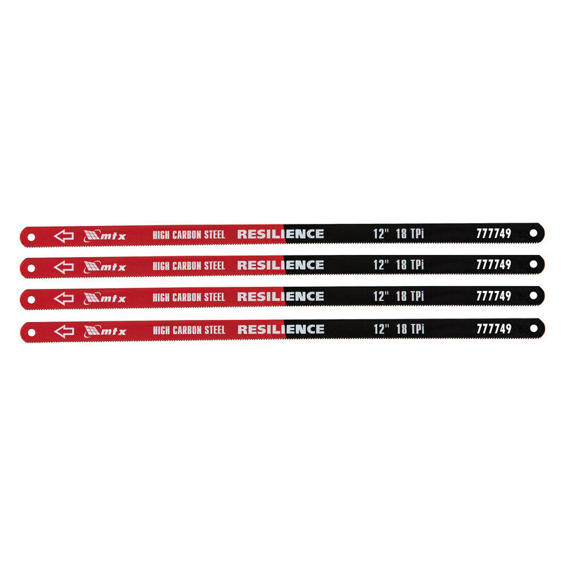 Le lame per seghe per metalli MTX sono progettate per tagliare varie parti in metallo durante lavori di costruzione, ristrutturazione, ecc. Realizzate in acciaio ad alto tenore di carbonio, hanno denti temprati e temprati che consentono una versatilità nel loro utilizzo: possono tagliare metallo, legno o plastica. Il numero elevato di denti ( 18 TPI ) consente un movimento fluido, senza intoppi, nonché un taglio rapido, netto e preciso. Il set include due confezioni da 2 lame ciascuna. Informazioni tecniche: - Lunghezza: 300 mm - Altezza: 13 mm - Passo: 18 TPI