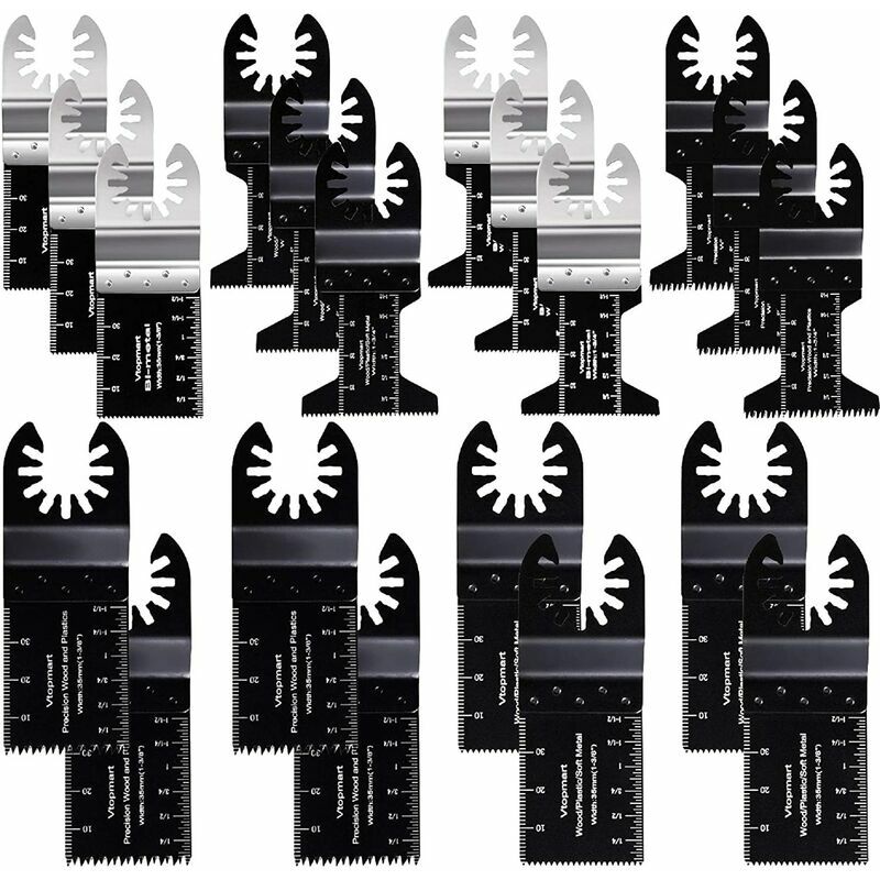 Non adatto a Fein Supercut< /span> Kit lama per sega oscillante di alta qualità - 20 pezzi contiene 6 diversi tipi di lame per sega, per il taglio di legno, metallo, plastica e altri materiali, ogni tipo di sega la lama è specifica per un uso particolare . Le nostre lame per seghe oscillanti possono soddisfare una varietà di esigenze, che possono essere utilizzate per l'officina, la casa o qualsiasi altro luogo. Più pesanti e più spesse della maggior parte - Realizzate in lega di acciaio e acciaio ad alto tenore di carbonio, le nostre lame oscillanti multi -le lame degli utensili sono realizzate con tecniche speciali e metalli spessi attraverso i quali diventano durevoli a lungo. Design speciale per tagli di precisione - Indicatori di lunghezza incorporati su entrambi i lati, un lato in pollici e l'altro in centimetri, rende facile ottenere tagli precisi in modo facile e veloce