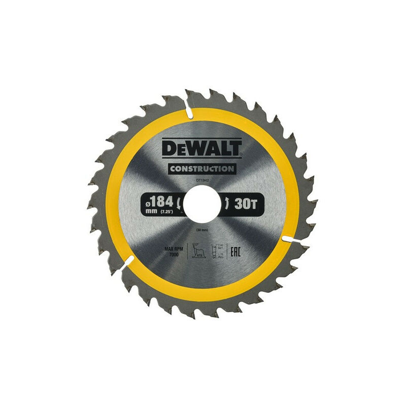 Lame per Seghe Circolari Portatili DEWALT DT1942-QZ Lame da cantiere estremamente robuste e solide per le esigenze più difficiliProgettato per il taglio rapido di legni naturali e compositi, nonché di armatureIdeale per risultati di taglio trasversale e longitudinale semplici e di buona qualità Le lame per edilizia sono adatte per le applicazioni di primo impianto, dove la finitura del taglio è meno importante e spesso si utilizzano legnami riutilizzati. I denti di queste lame sono progettati per resistere ai danni in caso di contatto con oggetti estranei come chiodi incastrati e cemento.