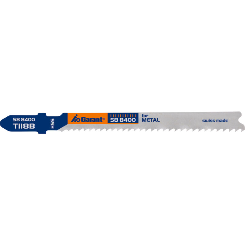 Lame per seghetti alternativi per metallo. Attacco con un dente di arresto. La dentatura progressiva permette al contempo una facile penetrazione nel materiale (nessuna oscillazione su lamiere sottili) ed elevate prestazioni di truciolatura. Fornitura: 5 pezzi Dati tecnici Tipo di prodotto Lama per seghetti alternativo Idoneità _T118B Spessore lamiera (lamiera piena), mm 2,5-6 Tipo di taglio taglio diritto fine Numero di lame 5 Materiale per lame HSS Passo dentatura, mm 1,9 − 2,3 Lunghezza lama, mm 92 Ottimizzato per il materiale Acciaio T118B