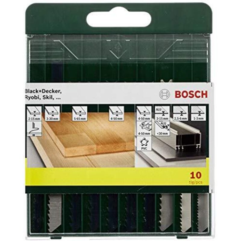 Dettagli tecnici Contenuto 1 KIT Lame seghetto 10-Pz. STS-Set (Legno/Metalloo) Bosch 2607019460 Lame seghetto 10-Pz. STS-Set (Legno/Metalloo) Bosch 2607019460 Incluso nella consegna 1 UE 18 E. Distanza 1,5 mm/18 TPI L 70 mm1 UE 18 B. Distanza 2,0 mm/14 TPI L 70 mm1 UE 27 D. Distanza 3,0 mm/8 TPI L 80 mm2 UE 11 C. Distanza 3,0 mm/8 TPI L 80 mm1 UE 11 H. Distanza 2,5 mm/10 TPI L 80 mm2 UE 11 D. Distanza 4 mm/6 TPI L 80 mm1 UE 19 BO. Distanza 2,0 mm/14 TPI L 70 mm1 UE 101 B.. Distanza 2,5 mm/10 TPI L 91 mmConfezione: Cassetta in plastica con cartone stampato con foro europeoDimensioni (lxbxh): 200 x 100 x 8Peso: 0,08 kg Requisiti di sistema null