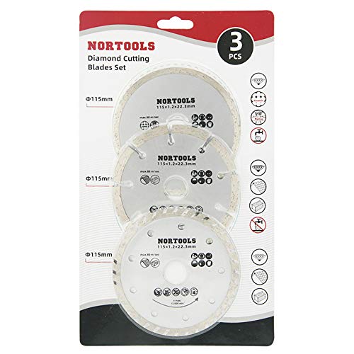 Lame da taglio diamantate Set Turbo Disco continuo Segmentato Disco da taglio Lame per smerigliatrice angolare Pietra Mattone Calcestruzzo Mattone Muratura 3 PZ * 115mm