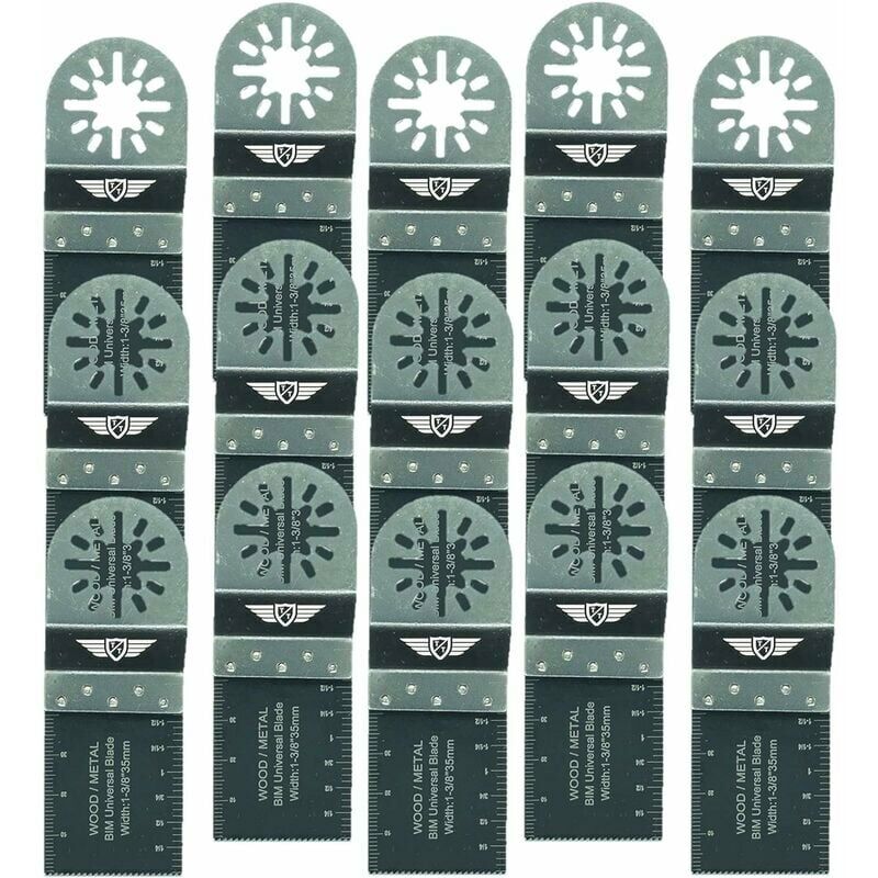 Kit di 15 lame universali Lame bimetalliche 15 x 35 mm Ideali per tagliare legno, metallo, chiodi, plastica, cartongesso, fibra di vetro, acrilico (plexiglass), laminato Il sistema di montaggio UniLok significa che sono progettati per adattarsi perfettamente al tuo multiutensile (compresi i multiutensili compatibili con le lame Bosch - non compatibili con le macchine StarLock) Lame multiutensile di qualità professionale con scala di misurazione (mm e pollici) Contenuto della confezione: 15 lame bimetalliche TopsTools 35mm UN35B. Lama bimetallica (B): ideale per tagliare legno, metallo, chiodi, plastica, cartongesso, fibra di vetro, acrilico (plexiglass ), laminato. Usa questa lama HSS se tagli legno con chiodi incorporati e legno duro, ti farà passare qualsiasi cosa. Non adatto per acciaio ad alta resistenza (viti, bulloni, ecc.).