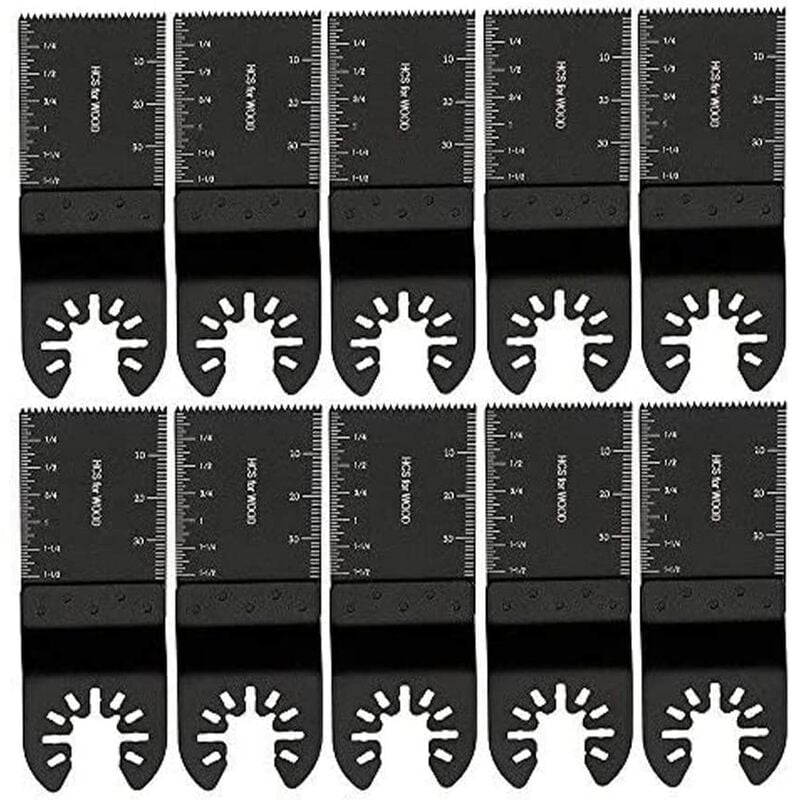 Larghezza dei denti: 34 mm, lunghezza totale: 90 mm. Usa i marcatori integrati - pollici su un lato, millimetri sull'altro - per misurare rapidamente e con precisione la profondità del tuo taglio. Materiale: realizzato in acciaio ad alto tenore di carbonio, metalli pesanti e tecniche di produzione di alta qualità garantiscono un'usura superiore resistenza e durata. 【Funzione】Ideale per demolizione, idraulica, ristrutturazione e legno morbido e metallo (non consigliato per tagliare chiodi).< br>Compatibilità: perfetto per tagliare plastica, metallo morbido, legno. Uso: perfetto per tagliare legno, metallo, chiodi, plastica, cartongesso, fibra di vetro, acrilico (plexiglass), laminato. Caratteristiche: 1. Confezione da 10 lame per sega in acciaio ad alto tenore di carbonio da 34 mm per macchina di finitura multifunzione 2. Materiale: acciaio ad alto tenore di carbonio. Dimensioni: Larghezza del dente: 34 mm. Lunghezza totale: 93 mm. Caratteristiche: Alta qualità contenuto di carbonio
