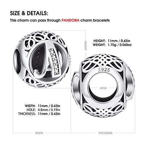 LaMenars Vintage Charm Stile Vintage con Lettera dell'alfabeto, con Zirconia cubica Trasparente, Compatibile con bracciali ed Europei e Argento (Letter A)