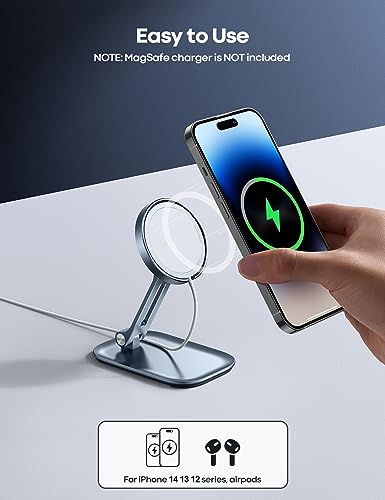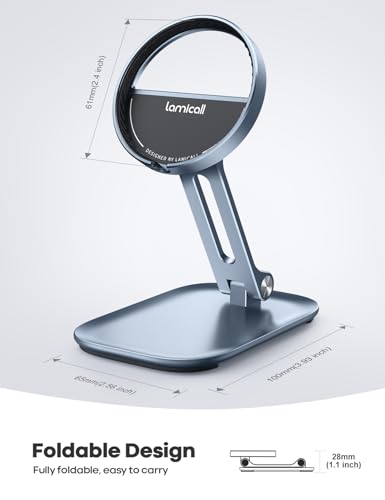 Lamicall Supporto Cellulare per MagSafe Caricatore - Porta Pieghevole Telefono Tavolo in Alluminio, Rotazione a 360°, per iPhone 15 14 13 12 Pro Max/Pro/Plus/Mini, [Caricatore per MagSafe Non Incluso]