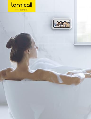 Lamicall Supporto per Telefono da Doccia, Custodia Impermeabile per Cellulare per Bagno [360°Rotazione & 120°Regolabile] 3 Ganci a Parete Adesivi Forti, Supporto Parete Bagno per Smartphone da 4 a 7"