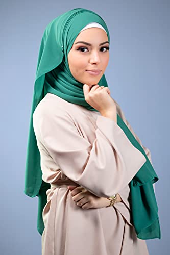 Lamis Hijab - Hijab chiffon opaco formato maxi 200X70 per donna musulmana velata, verde smeraldo, Taglia unica
