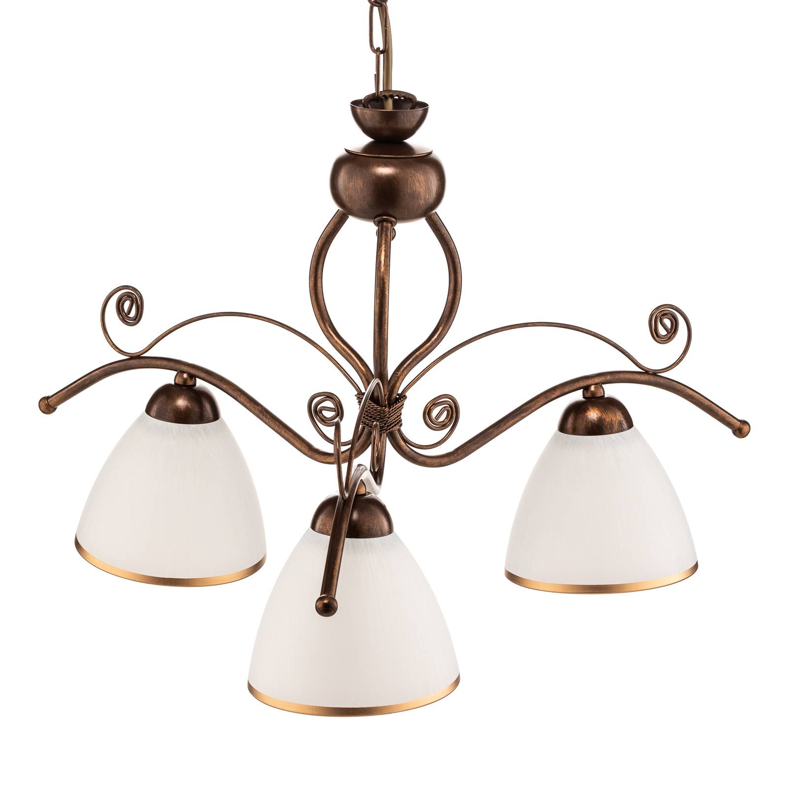 Lamkur Lampada a sospensione Roma bianco/marrone, 3 luci, per soggiorno / sala da pranzo, acciaio, vetro, E27, 60 W