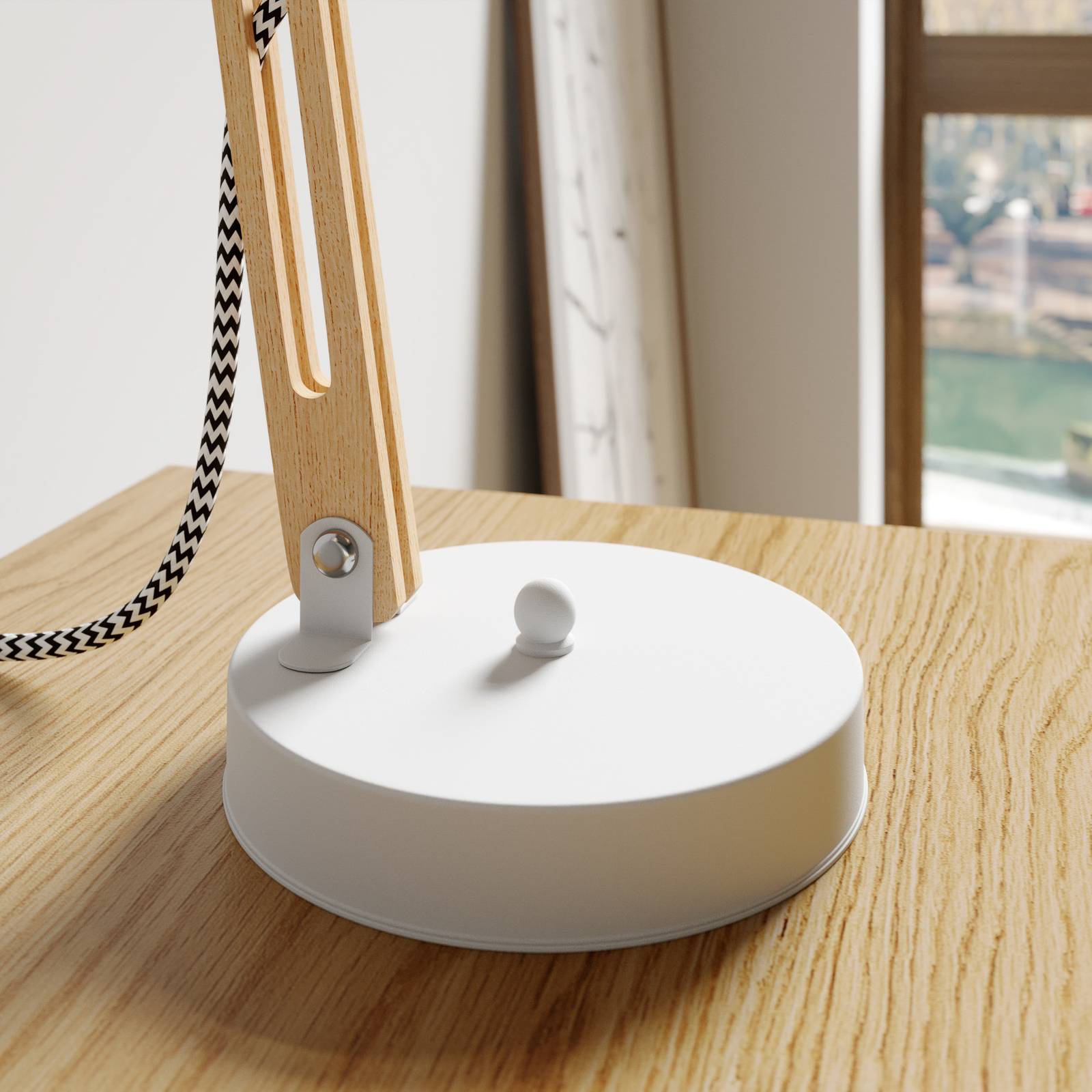 Lamkur Lampada da tavolo Skansen, regolabile, bianco, per soggiorno / sala da pranzo, legno, metallo, E27, 60 W, altezza: 44 cm