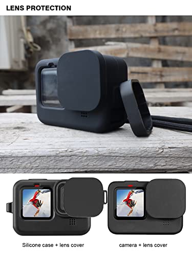 Lammcou Custodia Protettiva in Silicone per Hero 11 10 9 + Pellicola Protettiva in Vetro + Copriobiettivo, Custodia Protettiva per Fotocamera Custodia Protettiva per Hero 11 10 9 Accessorio