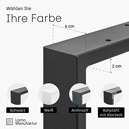 Set di gambe 2 pezzi: estremamente stabile e durevole - dimensioni: 50x72 cm (L x A) - ideale per un tavolo da pranzo o una scrivania - realizzato nell'UE con profili di altissima qualità 60 x 20 mm - polvere rivestito in colore nero - struttura della superficie elegante e opaca