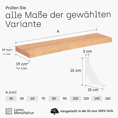 Prodotto esclusivo in legno massello: mensola a muro artigianale in legno naturale al 100% - unico bordo levigato - realizzata da una manifattura con tradizioni nell'UE - profondità: 18-20 cm - disponibile nelle lunghezze 40-160 cm