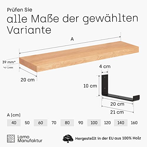 LAMO Manufaktur mensola in legno, mensola pensile Industrial, naturale/Nero 140cm, LWG-01-A-002-140JS